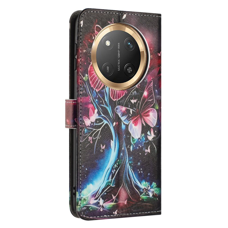 Protege tu Honor Magic 7 Lite / X9c con estilo gracias a esta funda monedero con motivos de mariposas y árboles. Con ranuras para tarjetas, un soporte plegable y un práctico cierre magnético, combina estilo y funcionalidad.