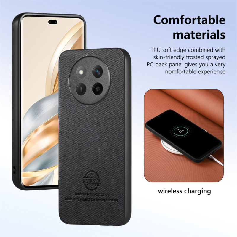 Protege tu Honor Magic 7 Lite / X9c con estilo con esta funda de piel con textura de tela. Diseño híbrido que combina TPU suave y panel trasero de PC esmerilado para una protección óptima. Bordes elevados para proteger la pantalla y la cámara de arañazos.
