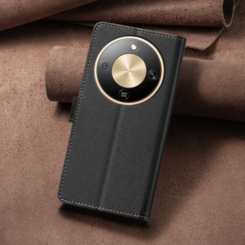 Protege tu Honor Magic 8 Lite con estilo con esta funda monedero de piel de PU con textura de lichi. Con tecnología anti-RFID, tiene 3 ranuras para tarjetas, 1 bolsillo para billetes y un soporte manos libres integrado. Su cierre magnético seguro.