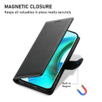 Elegante y práctica funda monedero para su Honor Magic 8 Lite 5G. Diseño refinado con textura de lichi, cierre magnético seguro, ranuras para tarjetas y efectivo. Incluye colgante de mano para facilitar su transporte.