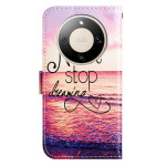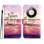 Protege tu Honor Magic 8 Lite con estilo gracias a esta elegante funda monedero con el inspirador motivo "Never Stop Dreaming". Con 3 ranuras para tarjetas, un bolsillo lateral y un soporte ajustable, combina practicidad y protección.