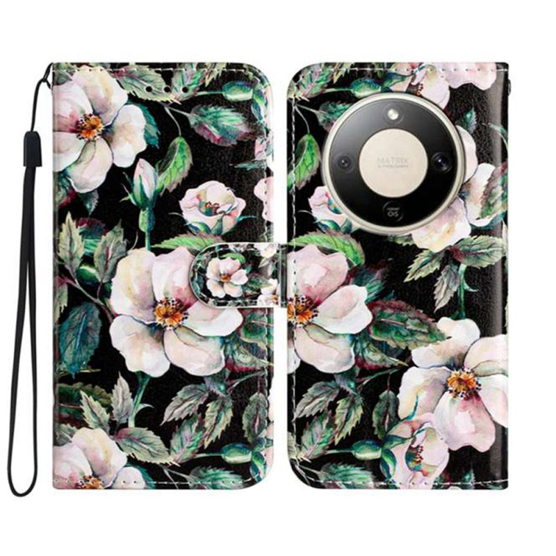 Protege tu Honor con estilo con esta funda cartera multifunción con un refinado motivo de magnolia. Con 3 ranuras para tarjetas, un cierre magnético seguro y una colgante de mano extraíble, combina estilo y practicidad.