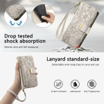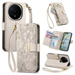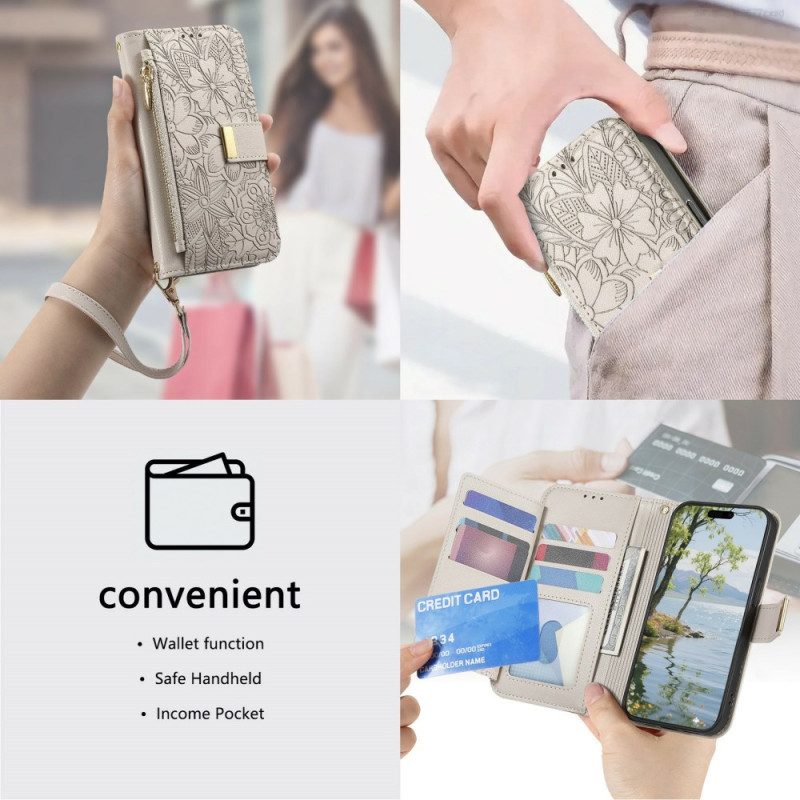 Elegante funda cartera para el Honor Magic 8 Pro con refinados motivos florales. Incluye varias ranuras para tarjetas, un bolsillo con cremallera seguro y una colgante de muñeca desmontable. Función de soporte integrada para...