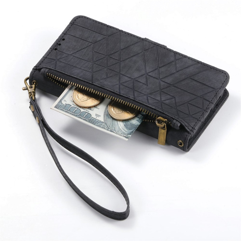Funda monedero multifunción de piel PU de primera calidad con cremallera para el Honor Magic 8 Pro 5G. Elegante diseño geométrico, 3 ranuras para tarjetas, bolsillo seguro con cremallera y función de soporte integrada.