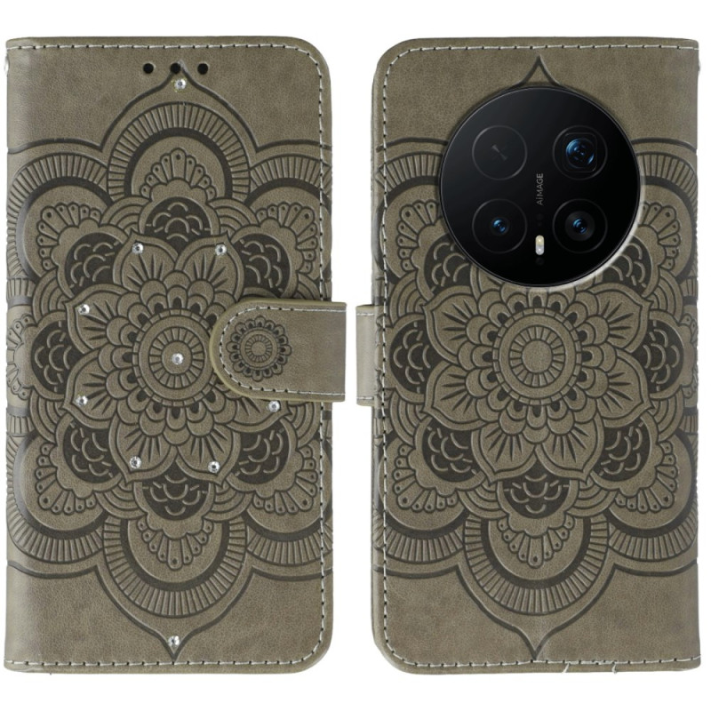 Protege tu Honor Magic 8 Pro 5G con estilo gracias a esta elegante funda con un refinado motivo Mandala y brillantes diamantes de imitación. Práctica y funcional, incluye ranuras para tarjetas, una colgante
