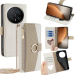 Funda cartera multifuncional de cuero PU para Honor Magic 8 Pro 5G. Diseño elegante con espejo integrado, 3 ranuras para tarjetas, compartimento para efectivo y bolsillo con cremallera. Se suministra con colgante de hombro de cadena de 1,2 m y anilla de sujeción. Protege...
