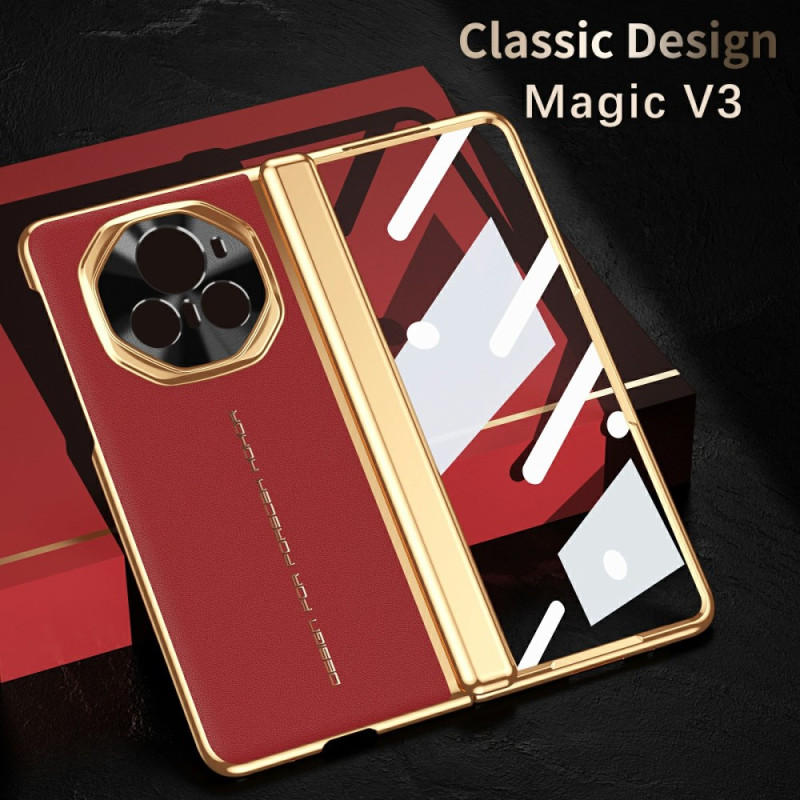 Descubre nuestra elegante funda para el Honor Magic V3 5G. Combinando protección y estilo, ofrece una protección completa con cristal templado integrado, un marco de aleación de lujo y un acabado de cuero PU de alta calidad. Su sofisticado diseño y su protección contra impactos la convierten en el accesorio perfecto para tu smartphone.