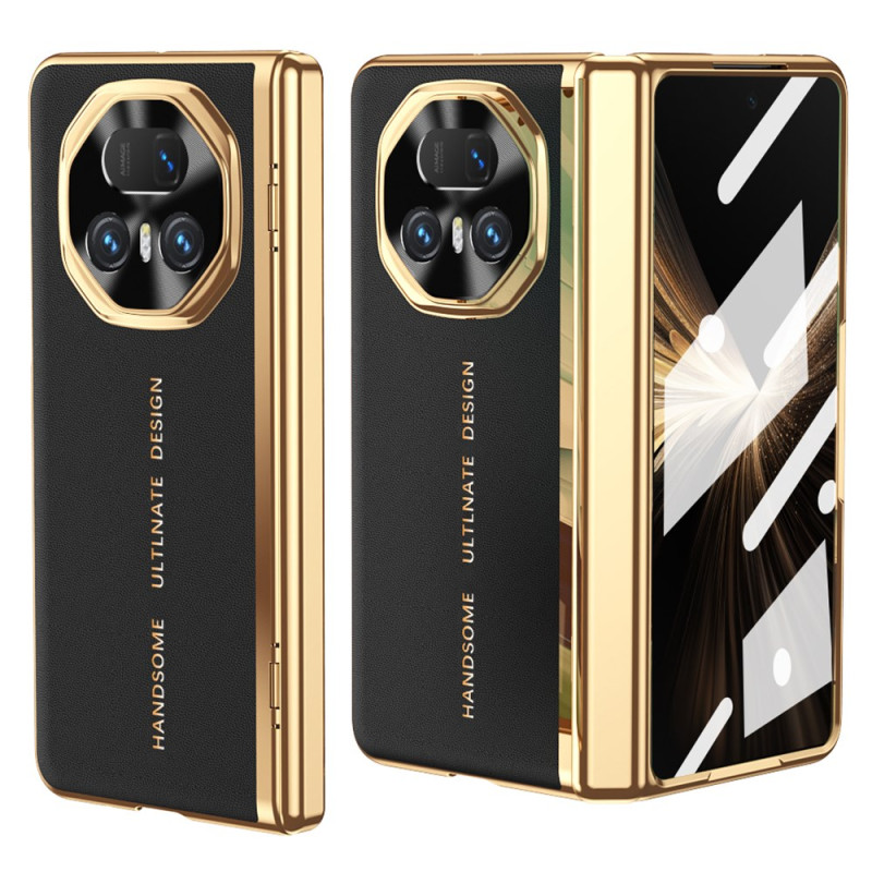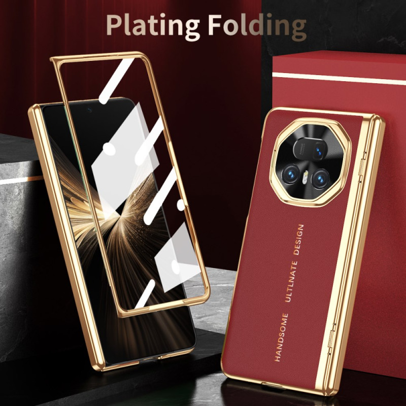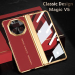 Descubra nuestra lujosa funda protectora para el Honor Magic V5 5G. Combina piel de PU texturizada y PC galvanoplástico para ofrecer una protección completa con un diseño elegante. Disfruta de una mayor protección de la cámara, una lámina frontal de cristal templado integrada y un diseño plegable en 180°.