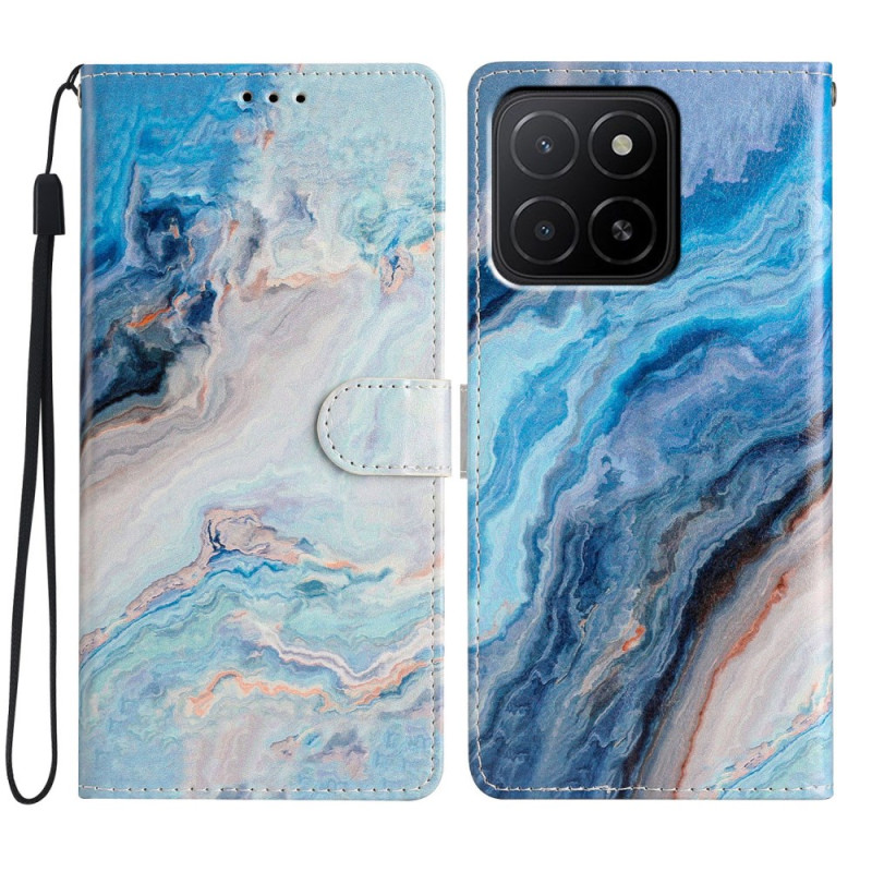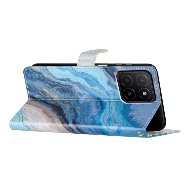Élégant étui portefeuille à rabat avec motif marbre bleu pour Honor X5b / X5b Plus. Doté de 3 emplacements pour cartes, 1 poche pour espèces, fonction support mains libres et fermeture magnétique sécurisée. Livré avec dragonne pratique...