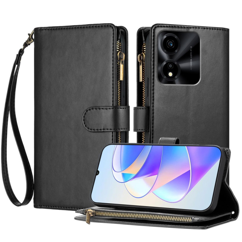 Descubra nuestra funda de piel tipo cartera para el Honor X5c Plus. Con su diseño elegante y funcional, ofrece una protección óptima contra golpes y caídas, un práctico espacio de almacenamiento para tus tarjetas y dinero, y una función de soporte para ver con las manos libres. El cierre magnético y la colgante de mano desmontable añaden practicidad y seguridad a su uso diario.