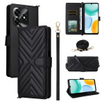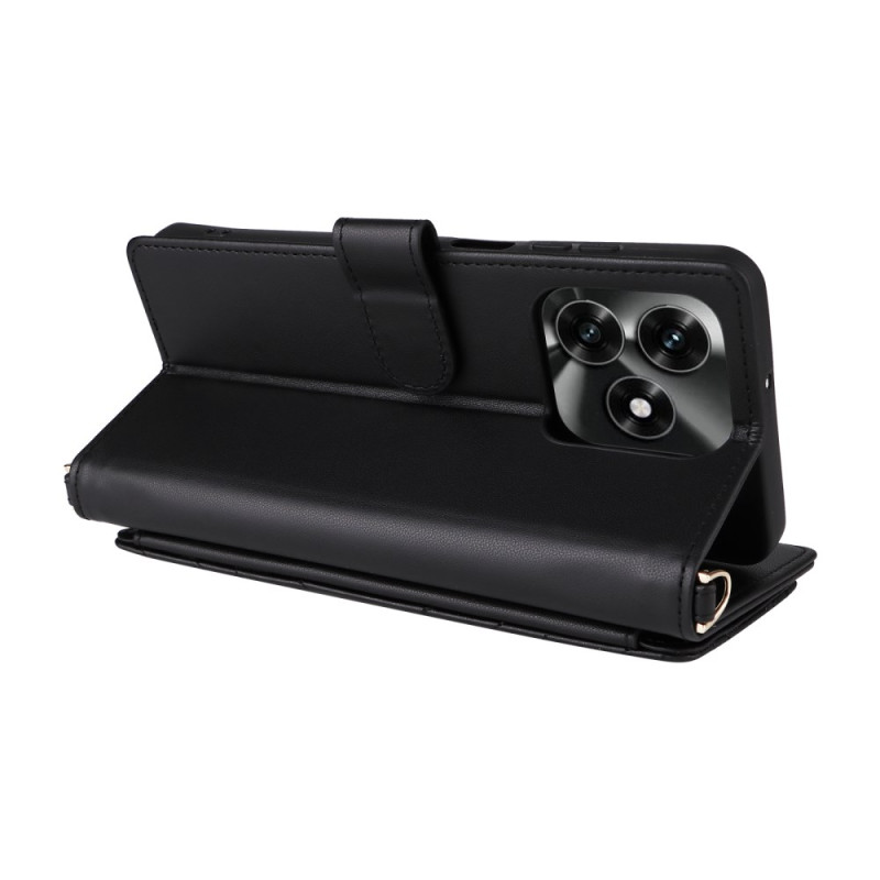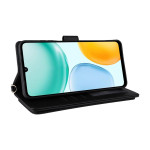 Étui portefeuille élégant pour Honor X5c Plus offrant une protection complète. Doté de 6 emplacements pour cartes, d'un support ajustable et d'une bandoulière amovible pour un transport pratique. Fermeture magnétique sécurisée.