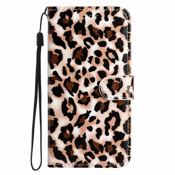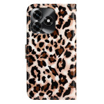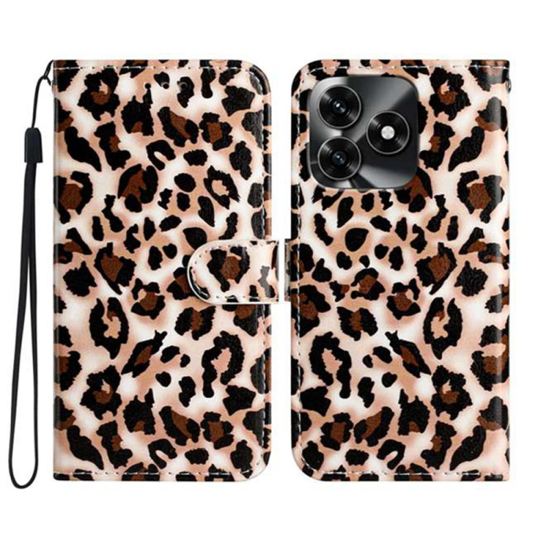 Elegante funda monedero con moderno estampado de leopardo para Honor X5c Plus. Diseño versátil con soporte ajustable, 3 ranuras para tarjetas, cierre magnético seguro y colgante de mano desmontable.
