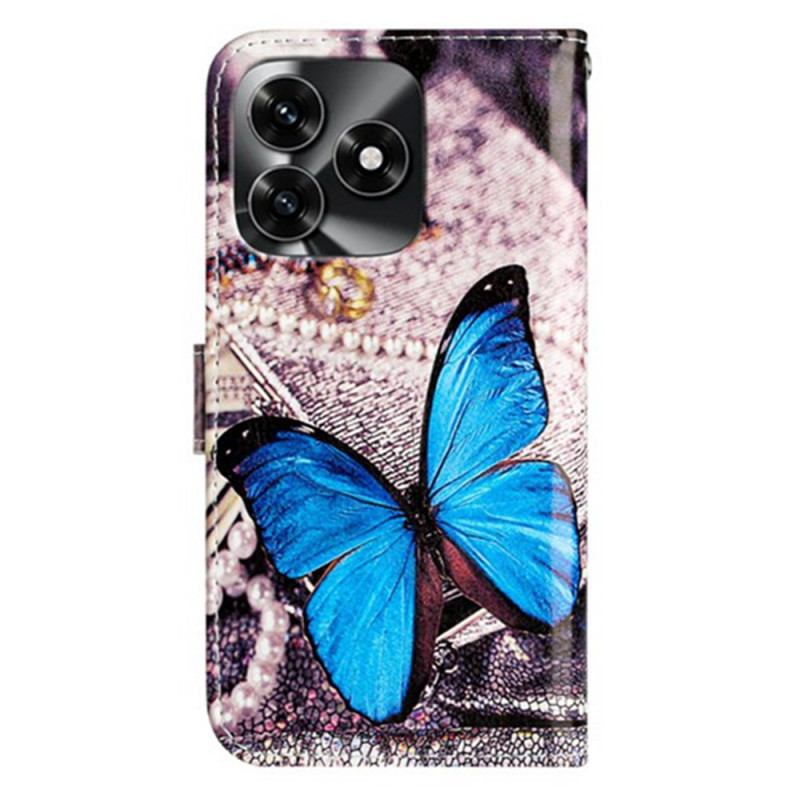 Elegante estuche billetero con un bonito motivo de mariposas azules. Incluye 3 ranuras para tarjetas, soporte para varias correas y colgante de mano desmontable. Protección total contra golpes y arañazos.