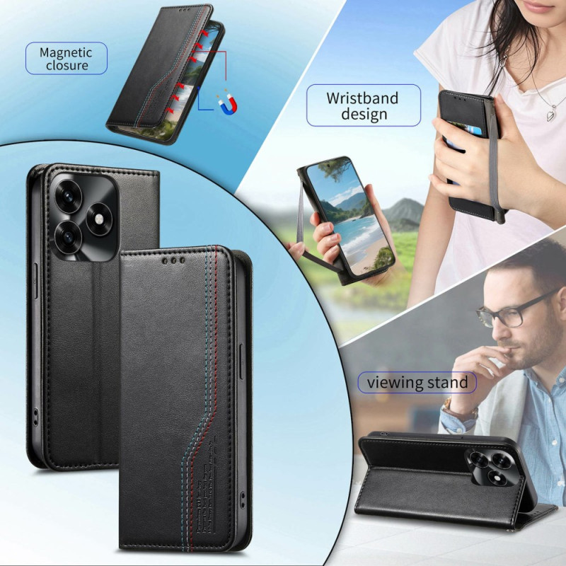 Descubre nuestra elegante funda cartera para Honor X5c Plus 4G. Fabricada en piel de PU de alta calidad con interior de TPU, ofrece una protección óptima. Equipada con 2 ranuras para tarjetas, 1 bolsillo para billetes, cierre magnético seguro y práctica colgante de mano para un agarre cómodo.