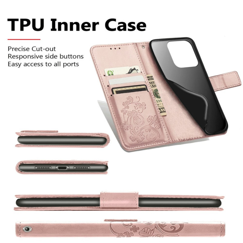 Protege tu Honor X5c Plus 4G con estilo con esta funda monedero de piel PU de primera calidad. Diseño refinado con motivo de trébol de la suerte, múltiples ranuras para tarjetas, bolsillo para billetes y función de soporte plegable para manos libres.