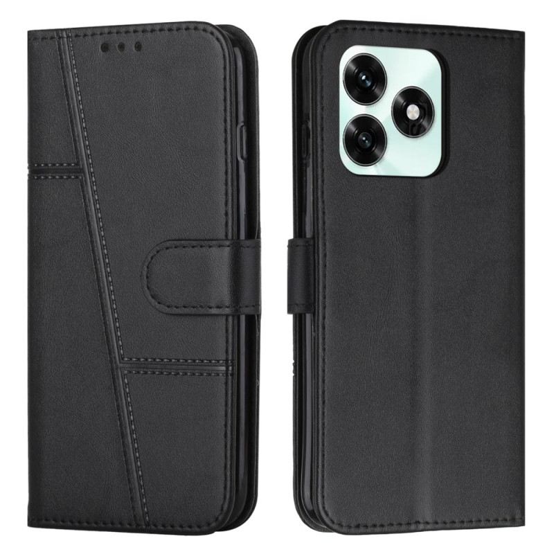 Elegante funda cartera en piel de PU texturizada para Honor X5c Plus. Incluye 2 ranuras para tarjetas, 1 bolsillo para fotos y un soporte para billetes. Soporte plegable para tener las manos libres. Cierre magnético seguro y colgante de muñeca incluida para facilitar su transporte.