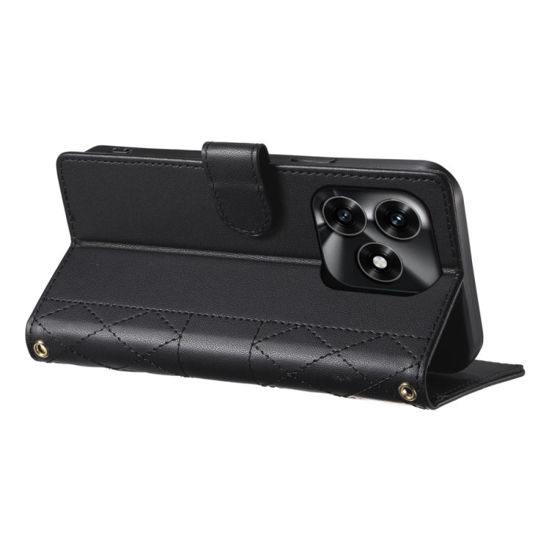 Protégez votre Honor avec style grâce à cet étui portefeuille élégant au design matelassé losange. Doté de 3 emplacements pour cartes, d'une poche pour billets et d'une fonction support intégrée, il combine protection optimale et praticité au quotidien.
