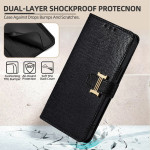Étui portefeuille élégant pour Honor X5c 4G avec boucle en métal signature et texture raffinée. Comprend 3 emplacements pour cartes, 1 poche pour espèces et support ajustable intégré. Protection double couche contre les rayures et les chutes.