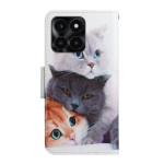Protege tu Honor X6c 4G / X6b 4G / X6a 4G / X5b / X5b Plus con estilo gracias a esta funda folio con un encantador motivo de tres gatos. Con prácticas funciones de cartera, un soporte integrado y una colgante de mano extraíble, combina elegancia y practicidad para tu día a día.