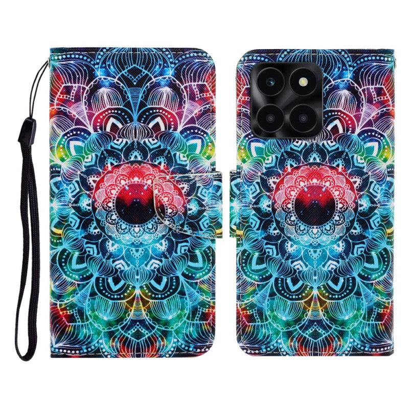 Protege tu Honor X6c 4G / X6b 4G / X6a 4G / X5b / X5b Plus con estilo gracias a esta funda con solapa que presenta un magnífico motivo de mandala. Con prácticas funciones de cartera, un soporte ajustable y una colgante de muñeca desmontable, combina estilo, protección y practicidad para el día a día.