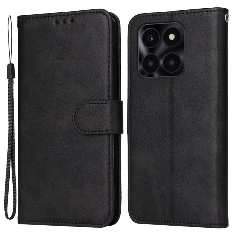 Étui portefeuille élégant en cuir PU texture veau pour Honor X6a 4G. Design multifonctionnel avec fentes pour cartes, fonction support pliable et fermeture magnétique sécurisée. Protection intégrale 360° grâce à la coque TPU enveloppante.