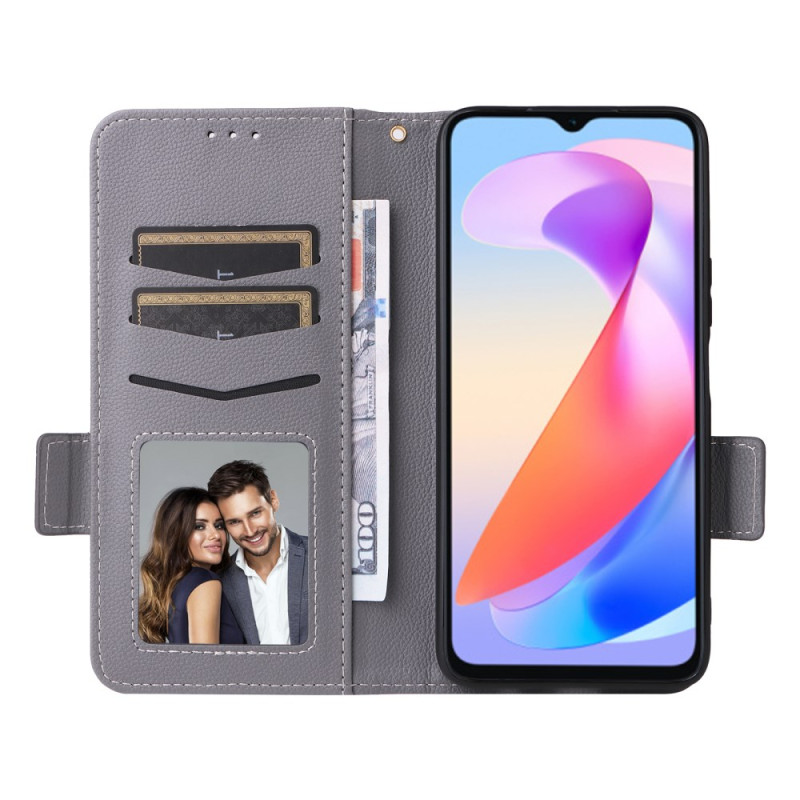 Découvrez cet élégant étui portefeuille pour Honor X6a 4G alliant style et fonctionnalité. Doté d'une texture litchi raffinée, il offre une protection complète avec ses multiples compartiments pour cartes et argent, sa fonction support et sa fermeture magnétique sécurisée.