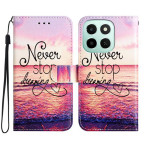Elegante cartera con el inspirador motivo "Never Stop Dreaming". Combina protección total, funcionalidad de cartera con 3 ranuras para tarjetas, soporte multi-colgante ajustable y cierre magnético seguro. Incluye colgante de mano desmontable...