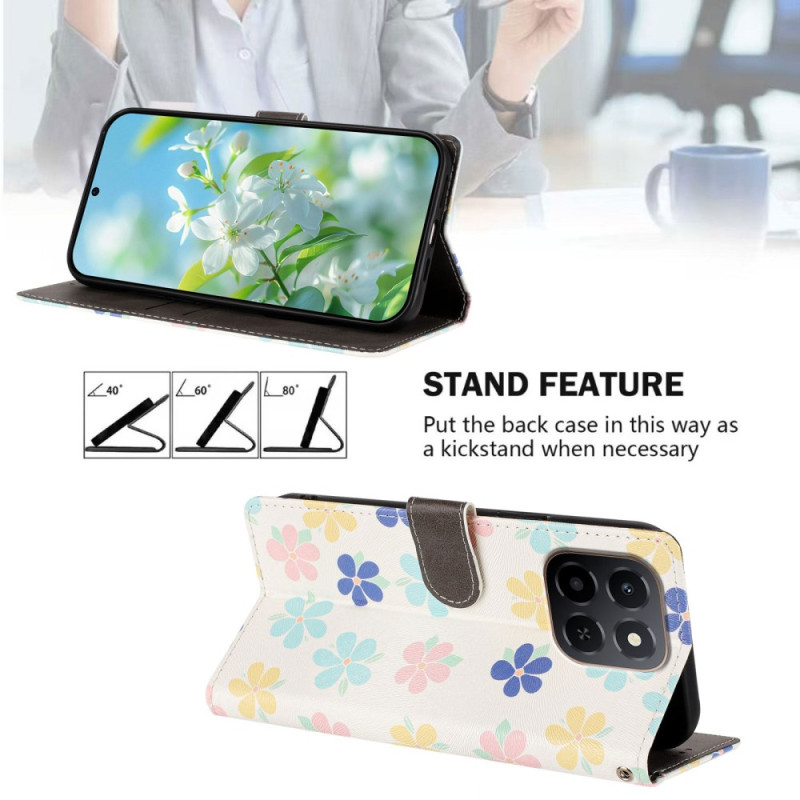 Protege tu Honor con estilo gracias a esta funda cartera con un vibrante motivo floral. Con 2 ranuras para tarjetas, un bolsillo para el dinero y una colgante extraíble, combina estilo y funcionalidad para el uso diario. Su función de soporte la hace ideal para ver con las manos libres.