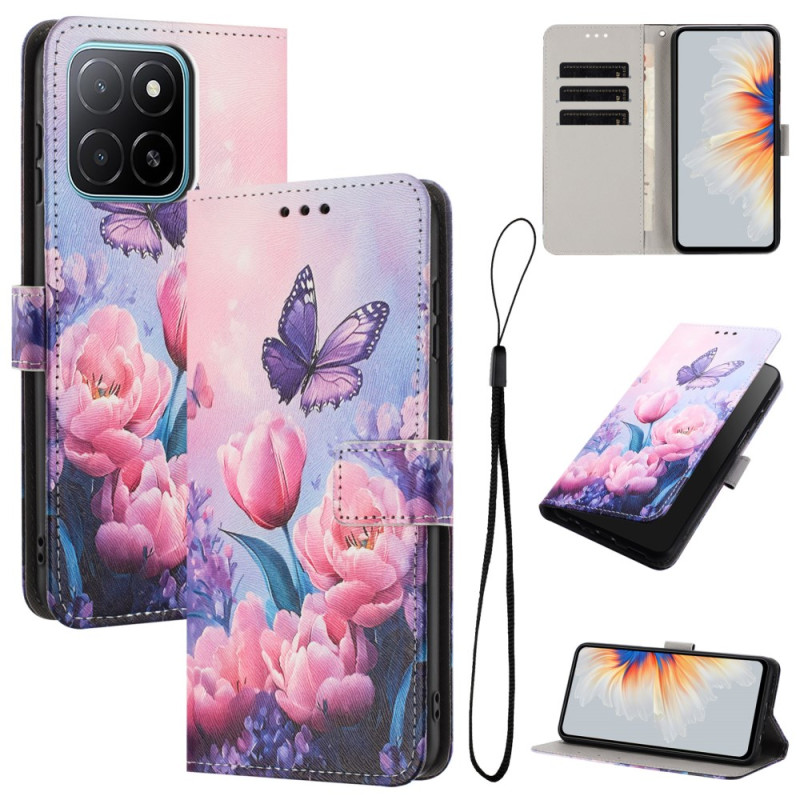 Protege tu Honor X6c 4G con estilo gracias a esta elegante funda cartera con flores y mariposas rosas. Con compartimentos para tarjetas, un práctico soporte de visualización y una colgante de mano, combina estilo y funcionalidad.