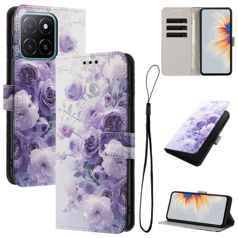 Elegante funda cartera de piel sintética para Honor X6c 4G en un sofisticado diseño rosa-morado. Incorpora compartimentos para tarjetas, un práctico soporte plegable y un cierre magnético seguro. La colgante de mano incluida facilita su transporte diario.