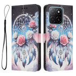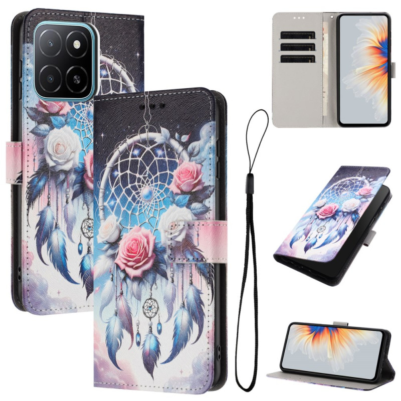 Elegante funda monedero para Honor X6c 4G con un refinado diseño de carillón de viento floreado. Incluye varias ranuras para tarjetas, un práctico soporte plegable y un cierre magnético seguro.