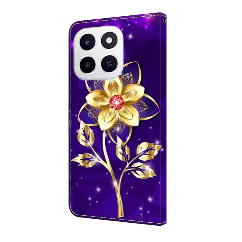 Protege tu Honor X6c con estilo con esta funda cartera con un motivo floral dorado sobre fondo morado. Con 2 ranuras para tarjetas, un compartimento para billetes y un práctico soporte desplegable, combina estilo y funcionalidad.