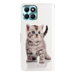 Descubre esta elegante funda cartera para Honor X6c 4G con su adorable motivo de gato. Diseñada con un práctico soporte, cierre magnético seguro, 3 ranuras para tarjetas y un bolsillo para efectivo. La colgante de mano incluida facilita su transporte.