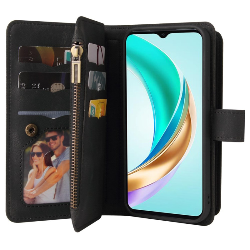 Protégez votre Honor X6c 4G / X6b 4G / X6a 4G / X5b / X5b Plus avec style grâce à cet étui portefeuille multifonction. Doté de 15 emplacements pour cartes, d'une poche zippée sécurisée et d'une dragonne détachable, il allie praticité et élégance pour votre quotidien.