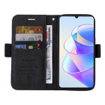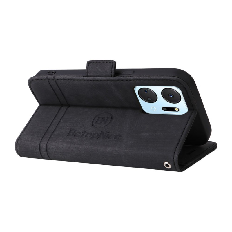 Elegante funda cartera de cuero PU con soporte integrado para Honor X7a 4G. Cuenta con 3 ranuras para tarjetas, 1 bolsillo para billetes y doble cierre magnético para una seguridad óptima. Diseño sofisticado con estampado de líneas.