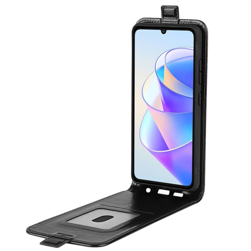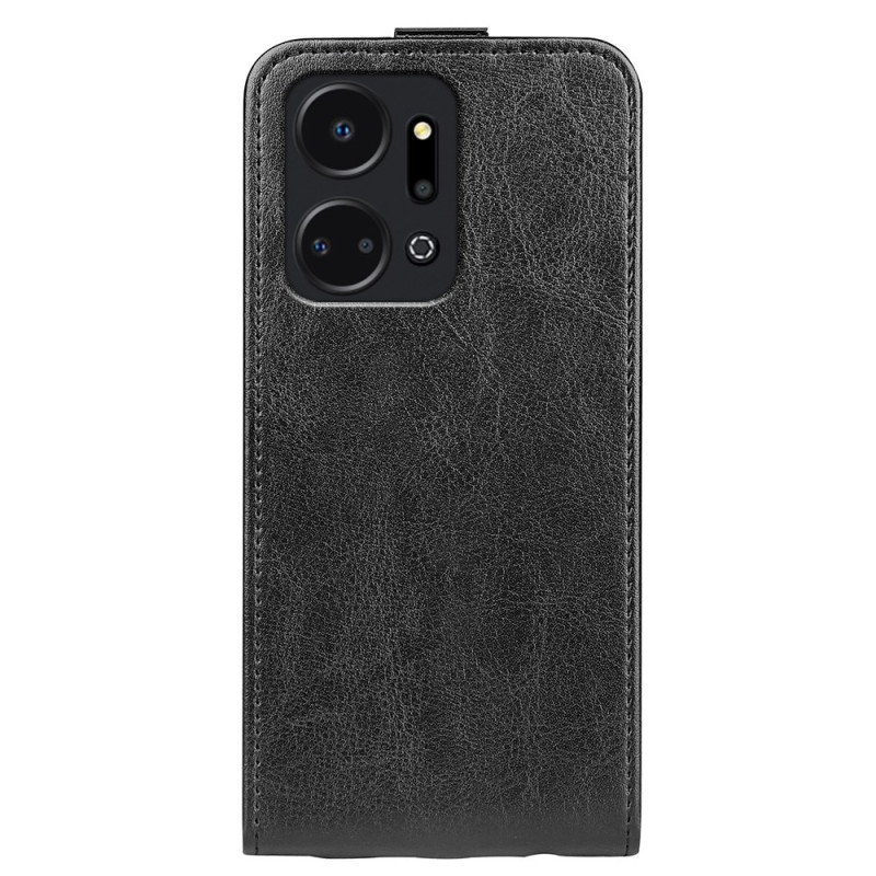 Elegante funda con solapa vertical para Honor X7a 4G. Diseño práctico con apertura hacia abajo para usarla con una sola mano, tarjetero integrado y cierre magnético seguro. Acabado texturizado premium para un agarre cómodo.