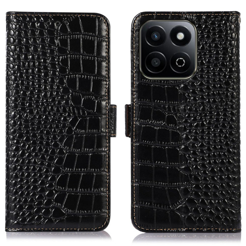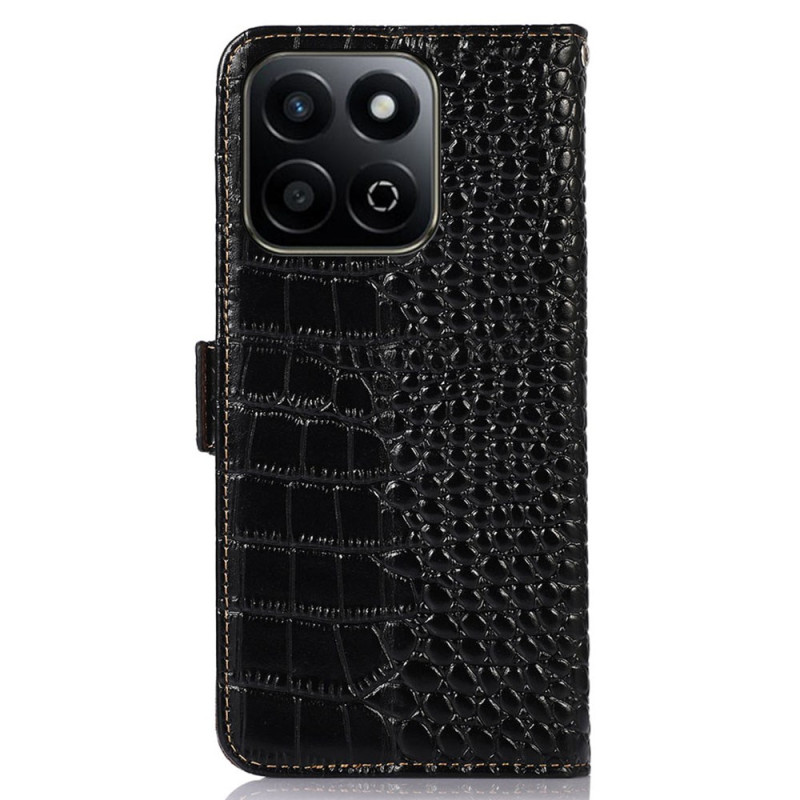 Descubra la elegancia y la funcionalidad con esta cartera de piel auténtica con textura de cocodrilo. Con 3 ranuras para tarjetas, un bolsillo para billetes y un soporte ajustable, combina un estilo refinado con protección.