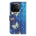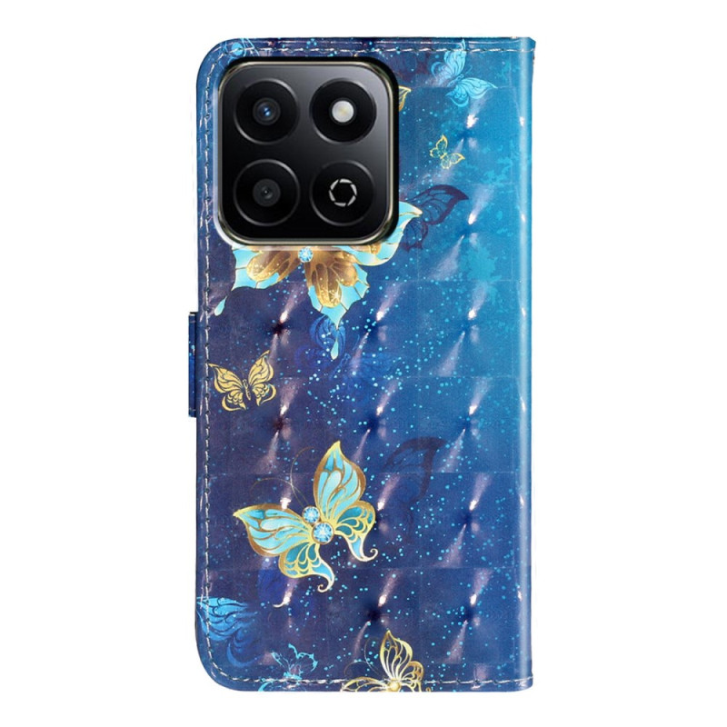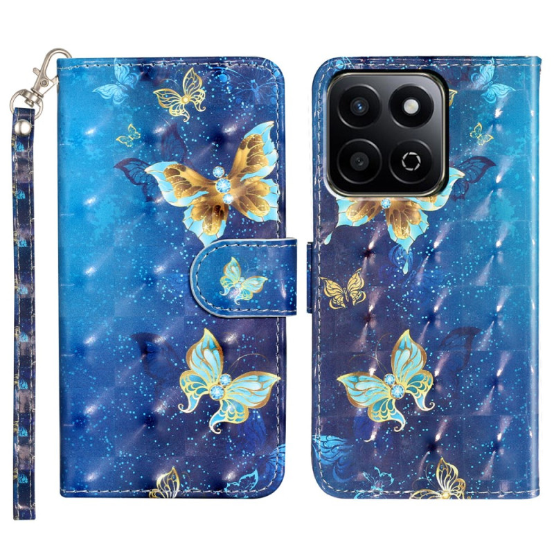 Protege tu Honor X7c 5G / 4G / 200 Smart 5G con estilo gracias a esta funda cartera con motivo de mariposa en 3D de color azul dorado. Con ranuras para tarjetas, un soporte ajustable y un cierre magnético seguro, combina estilo y funcionalidad. Se suministra con colgante de mano extraíble.