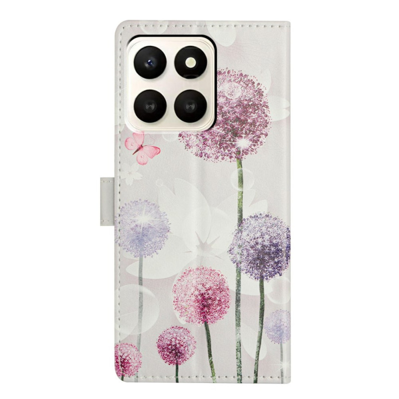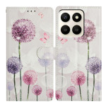 Elegante funda tipo cartera con motivo de diente de león para Honor X7d 5G. Incluye ranuras para tarjetas, soporte plegable y colgante de mano extraíble. Cierre magnético seguro y protección total contra golpes y arañazos.