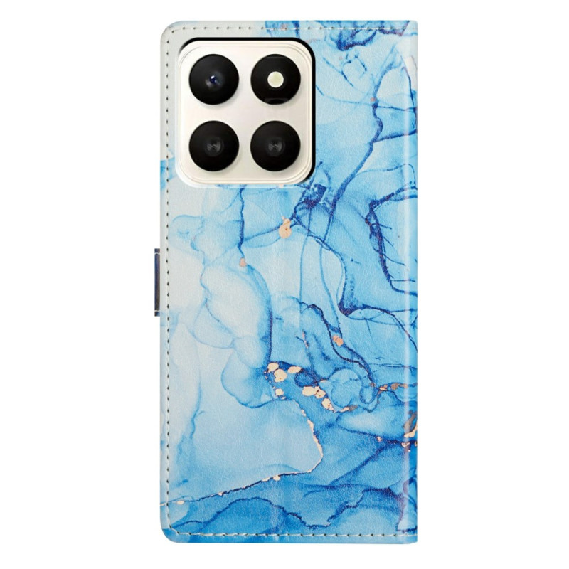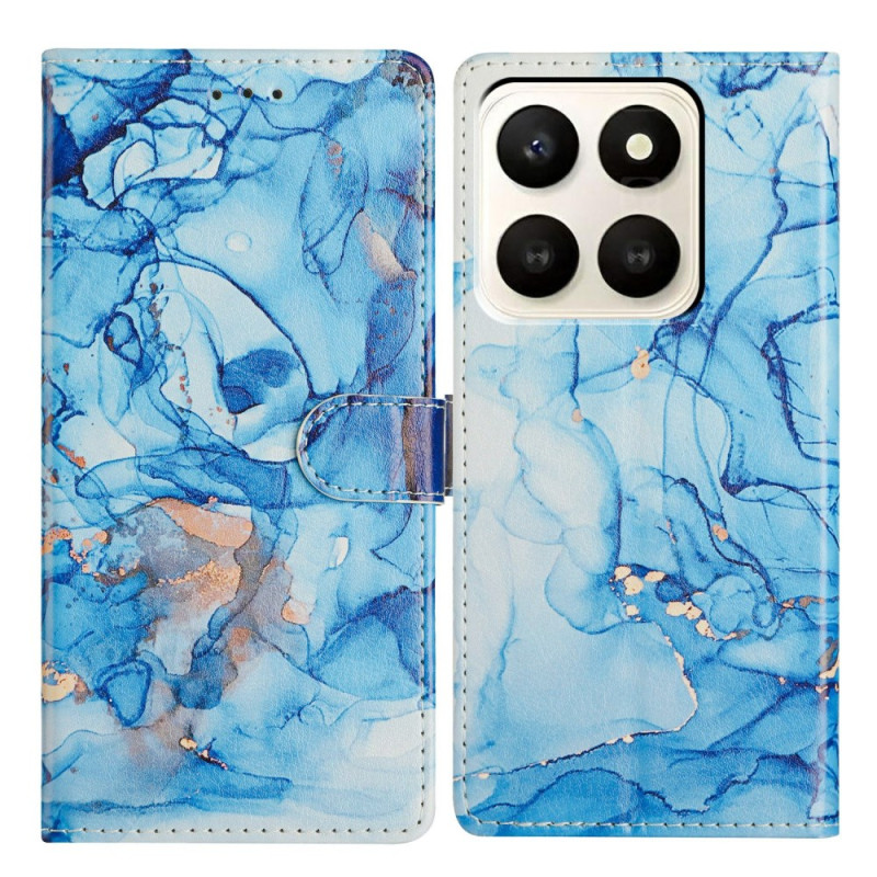 Elegante cartera con solapa y magnífico motivo de mármol azul. Incluye 2 ranuras para tarjetas, 1 compartimento para fotos y un espacioso bolsillo lateral. Soporte plegable integrado para tener las manos libres y colgante de mano desmontable para llevarla fácilmente.