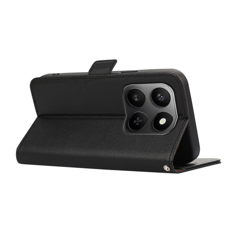 Elegante funda de piel de PU con textura de lichi y protección RFID integrada. Diseño delgado y ligero de TPU, ranuras para tarjetas y soporte manos libres. Protección completa contra arañazos y caídas para tu smartphone Honor.
