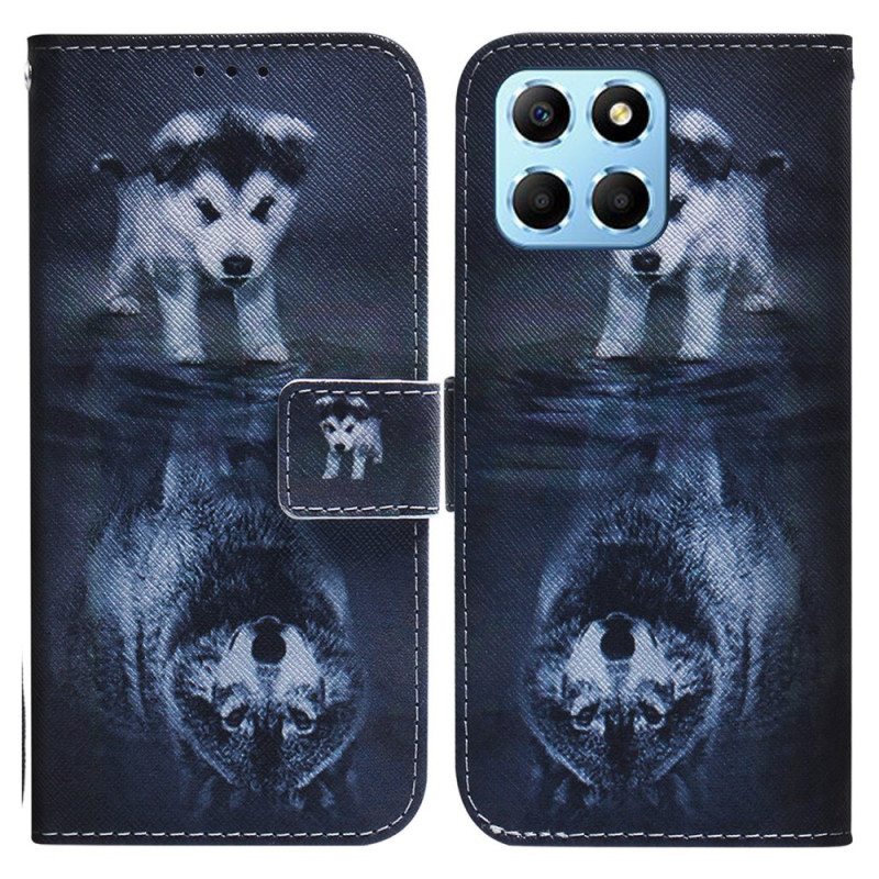 Protege tu Honor X8 5G con estilo con esta funda monedero con solapa con un exclusivo motivo de perro y lobo. Con compartimentos para tarjetas, un soporte plegable y un cierre magnético seguro, combina estilo y funcionalidad para el uso diario.
