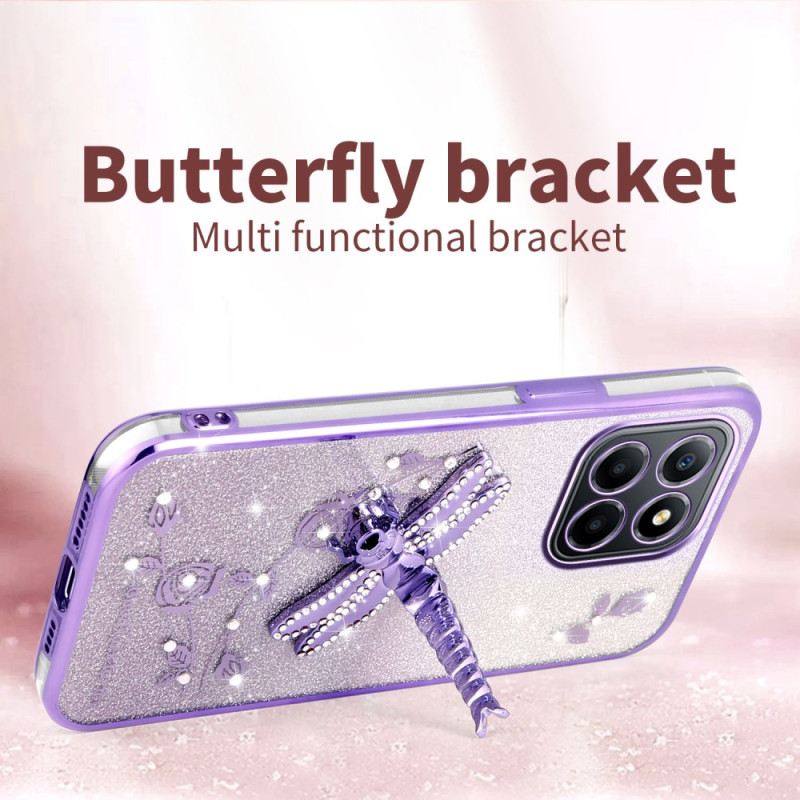 Protege tu Honor X8 5G con estilo con esta brillante funda adornada con flores eternas y brillantes. Su soporte de libélula integrado permite ver con las manos libres, mientras que el material de TPU flexible ofrece una protección óptima contra los golpes cotidianos.