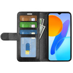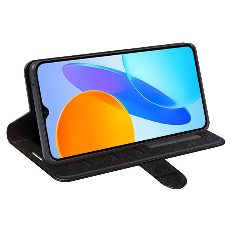Elegante funda cartera en piel de PU con textura de caballo loco y TPU para Honor X8 5G. Con ranuras para tarjetas, un compartimento para notas y un soporte ajustable para ver tus vídeos con total libertad.
