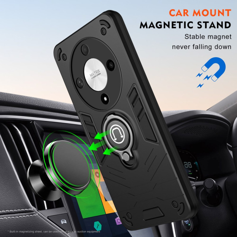 Protege tu Honor X9b 5G con esta robusta funda de PC y TPU. Con un anillo de soporte giratorio, un pie de apoyo integrado y una tapa deslizante para la lente, ofrece una protección y una practicidad óptimas para el uso diario.