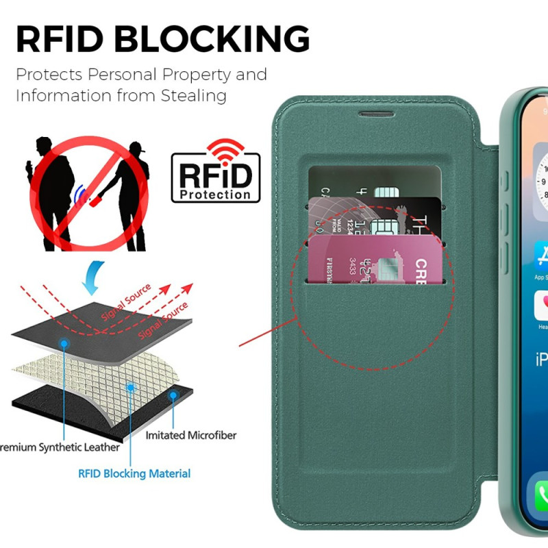 Con las ranuras para tarjetas integradas, puedes llevar tu DNI o tarjeta bancaria con facilidad. La tecnología de bloqueo RFID protege tu información personal de escaneos no autorizados, mientras que la protección reforzada alrededor de la cámara garantiza una seguridad óptima.