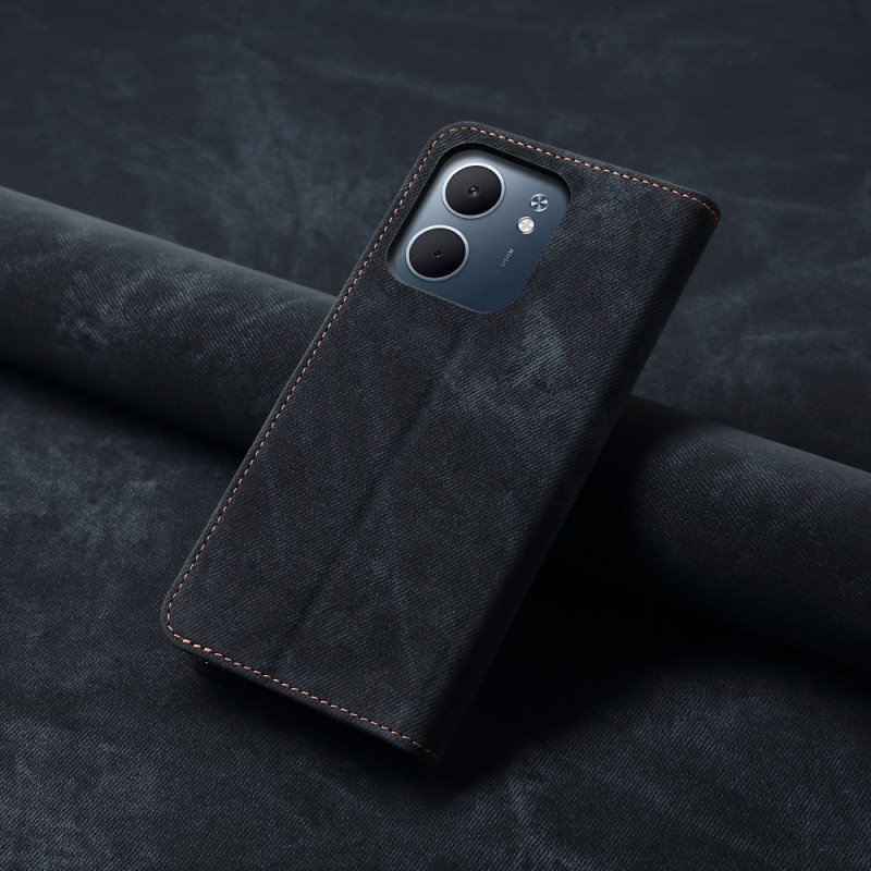 Esta elegante funda para el Oppo A5X 4G combina el estilo retro con la practicidad. Fabricada en piel PU de primera calidad con textura vaquera auténtica, ofrece protección total a la vez que incorpora 2 ranuras para tarjetas y un bolsillo lateral.