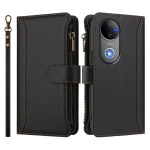 Funda cartera multifunción para Vivo V50 5G que ofrece una protección completa. Con 9 ranuras para tarjetas, bolsillo con cremallera para monedas y soporte manos libres. Cierre magnético seguro y práctica colgante de mano incluida.