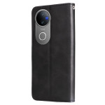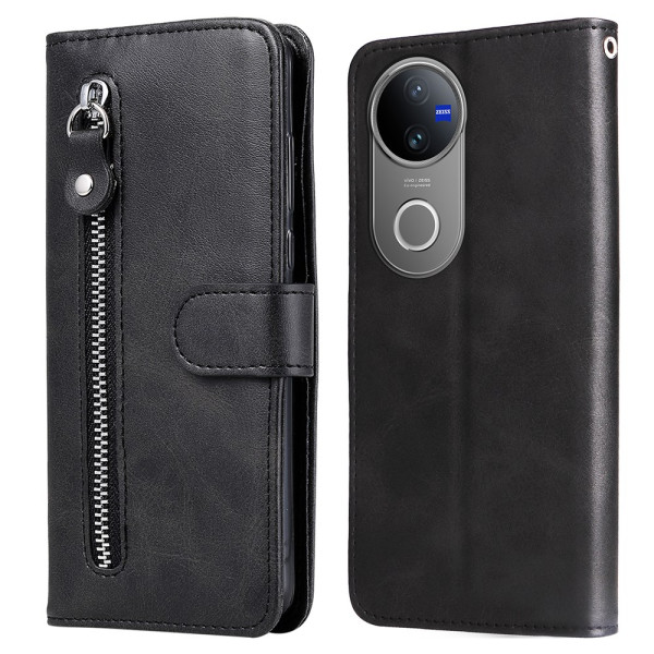 Elegante funda monedero para Vivo V50 5G con cremallera de seguridad, múltiples ranuras para tarjetas y función de soporte. Protección total contra golpes y arañazos gracias a su diseño de cuero PU de primera calidad y su robusta funda de TPU.