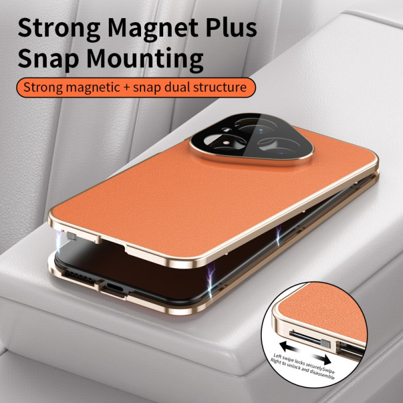 Protégez votre Huawei Pura 80 avec élégance grâce à cette coque magnétique premium. Son cadre aimanté innovant, son verre trempé frontal HD et son revêtement en cuir végétal offrent une protection complète tout en conservant un design raffiné et moderne.